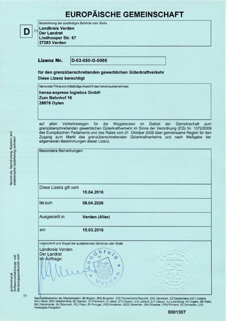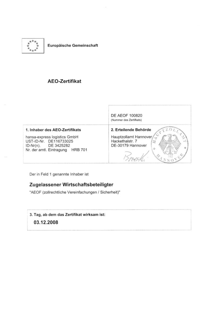 hansa-express Zertifikate: